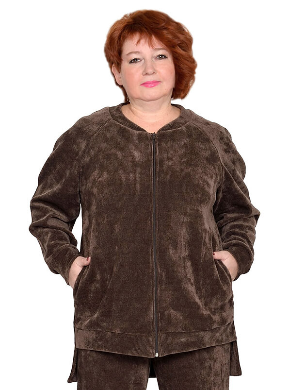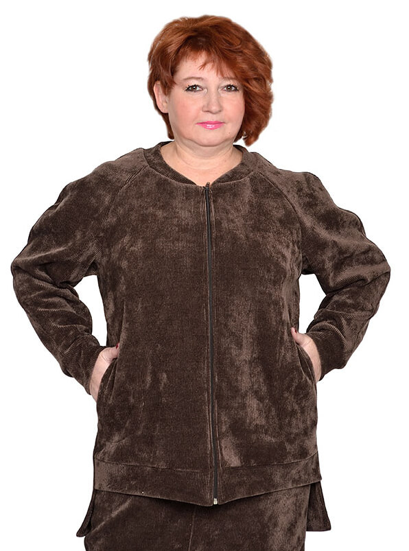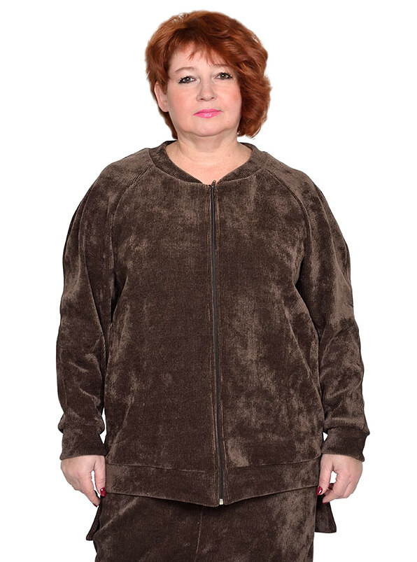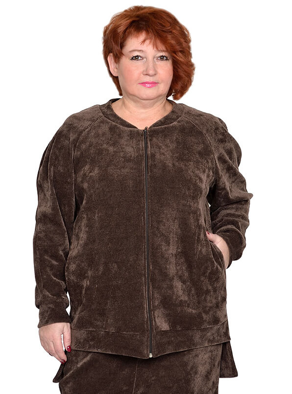 Коричневый жакет-бомбер из микровельвета. Ткань на хлопковой основе, упругая, тёплая, хорошо тянется, приятная на ощупь.