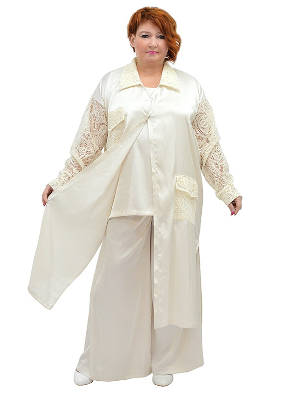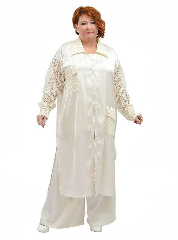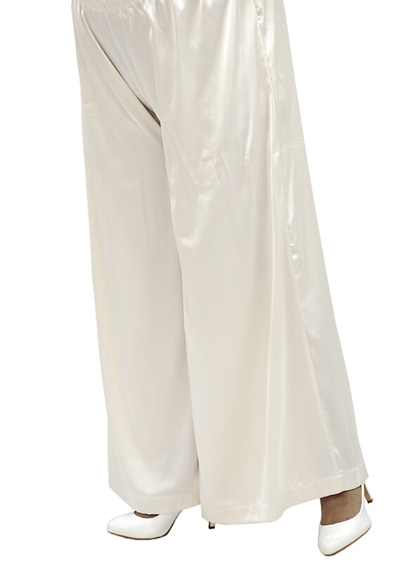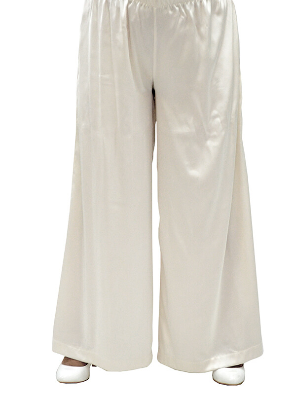 Свободные домашние брюки в бельевом стиле завораживают сатиновыми переливами ткани. Выполнены из лёгкого неэластичного шёлка Армани жемчужного цвета.