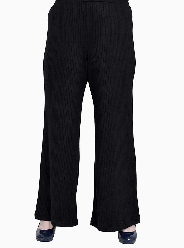 Брюки свободного кроя из мягкого трикотажа с выделкой под ангору. Предназначены для прохладных сезонов. Приятный к телу материал с упругой растяжкой отлично сохраняет тепло и не сковывает движений. Цвет чёрный, фактура - "лапша".