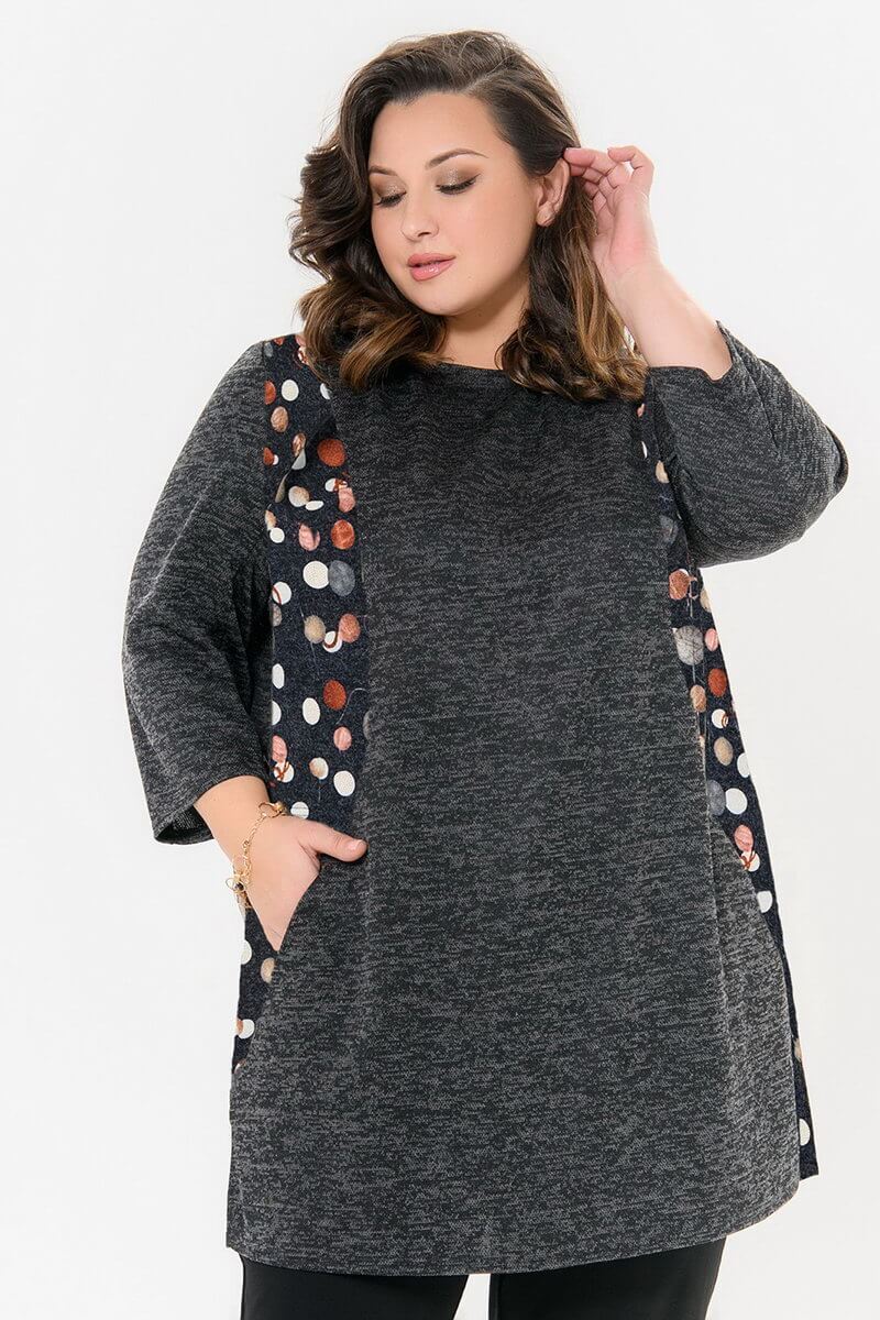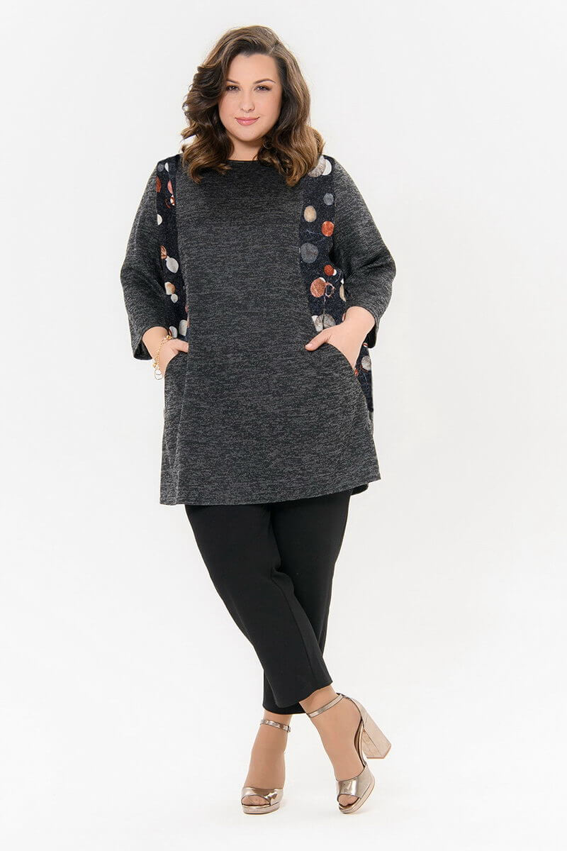 Повседневная туника из меланжевого джерси. Трикотаж на основе вискозы, средней плотности, эластичный, мягкий, практичный, мало мнется, не колется.
