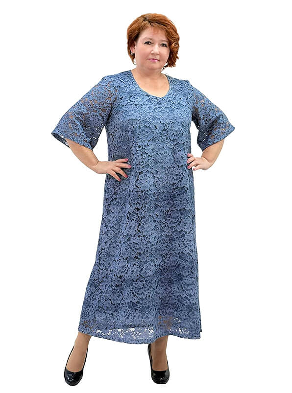 Крой слегка расширяющийся. Вырез горловины округлый. Рукав втачной, длина ниже локтя.