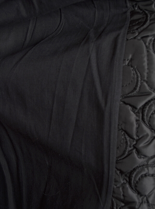 Чёрная стёганая куртка для прохладных дней весны и осени. Выполнена из плащёвой ткани на тонком синтепоне. Материал мягкий, тёплый, приятный на ощупь, не мнется. Подкладка - чистый хлопок.