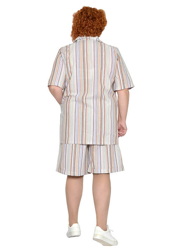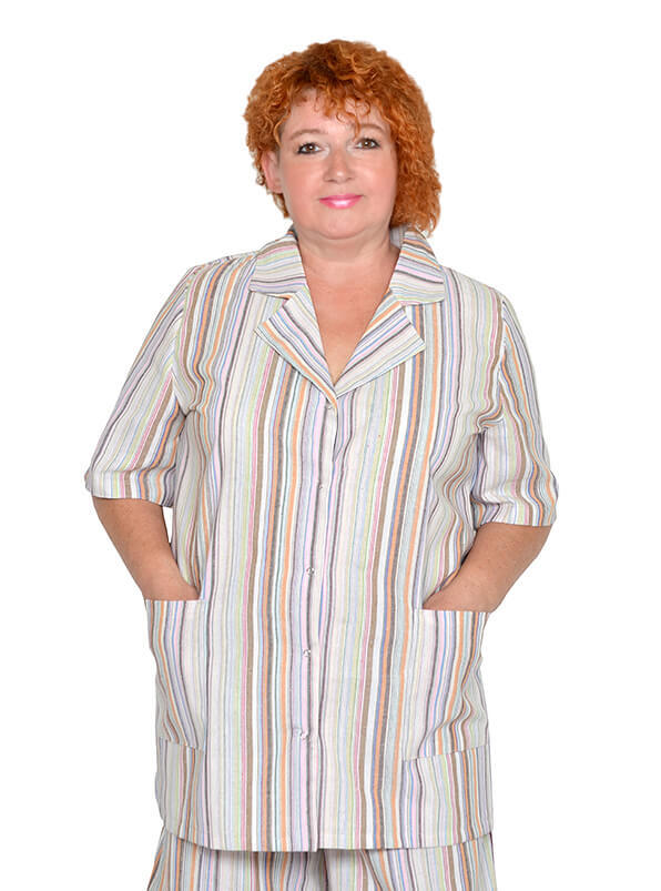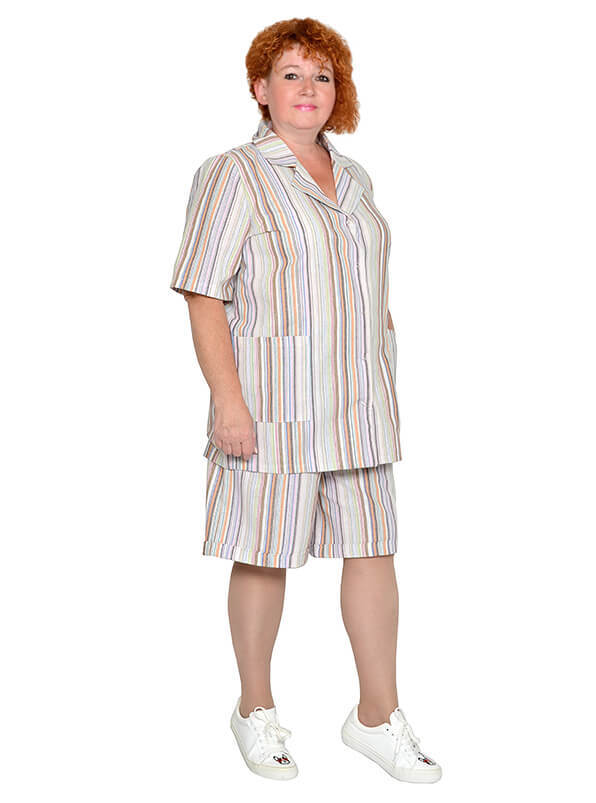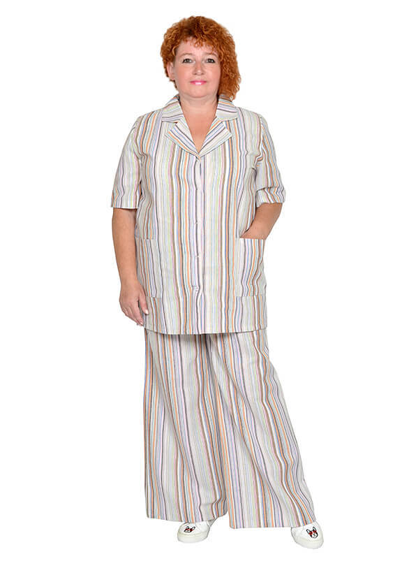 Летний жакет в пижамном стиле из плательной ткани в полоску полулён. Материал достаточно тонкий, дышащий, не тянется.