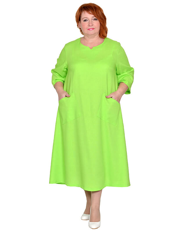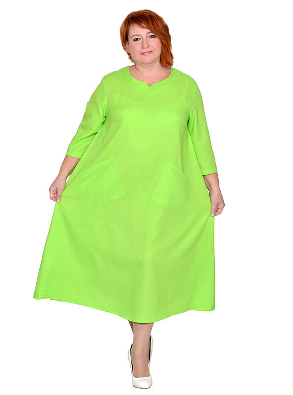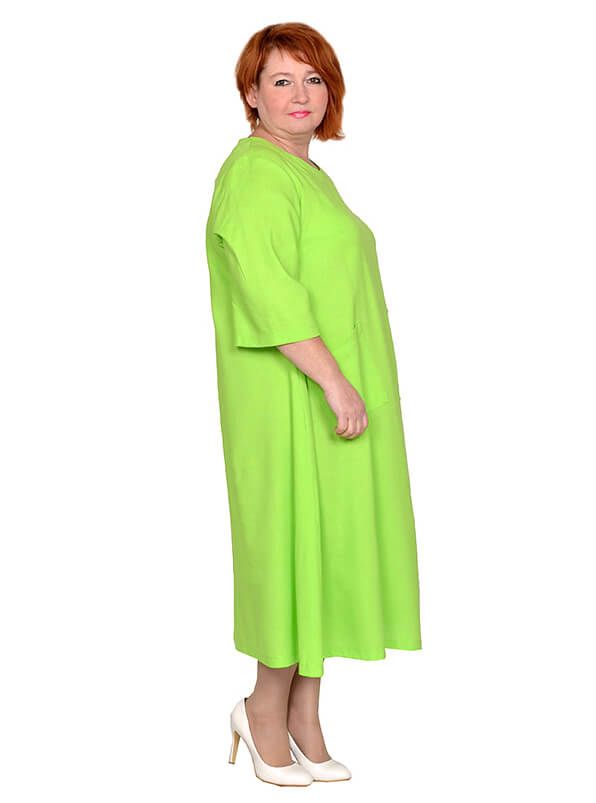 Добавь красок в лето - выбери это яркое платье и заряжай всех вокруг своим солнечным настроением!Модель из плательной ткани с вискозой и льном. Материал лёгкий, приятный на ощупь, не тянется, цвет лайма.