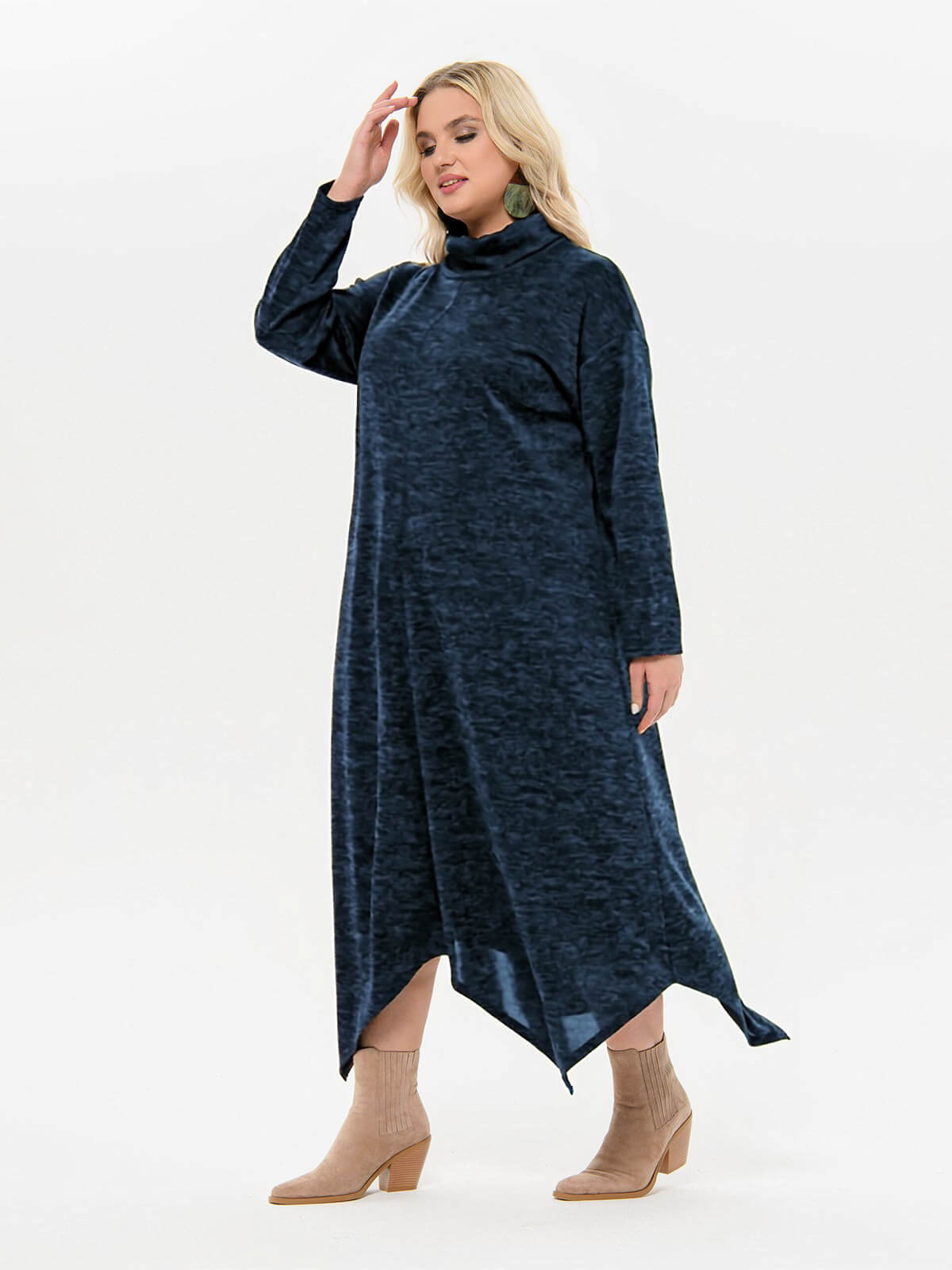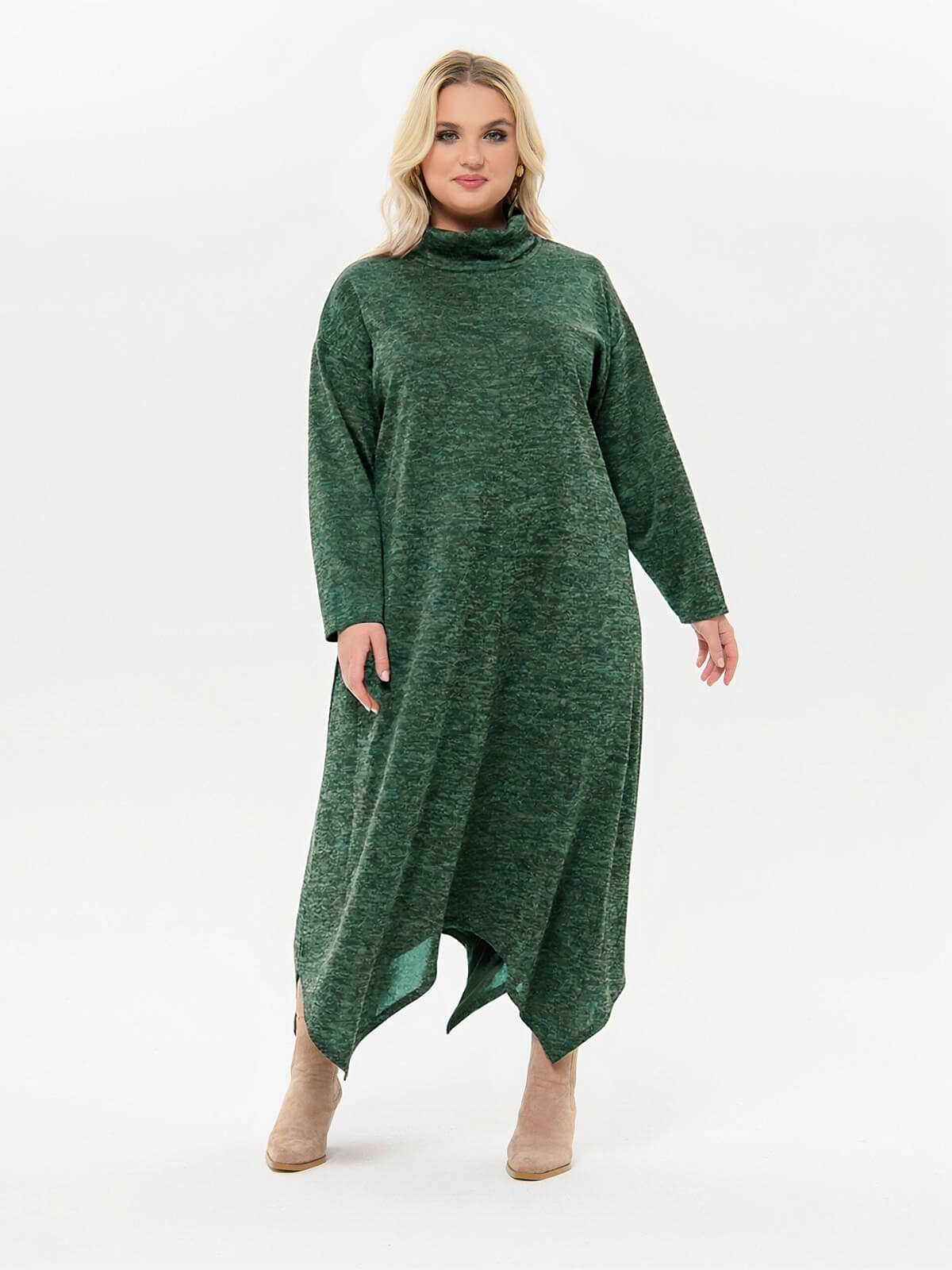 Эффектное платье для прохладных дней. Материал - трикотаж джерси-меланж средней плотности на основе вискозы.