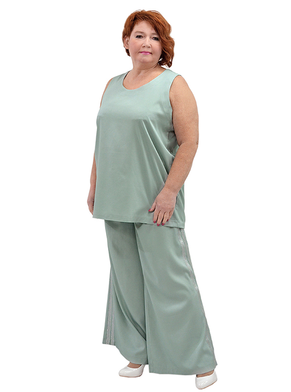 Фасон свободный, пояс с широкой резинкой. По бокам лампасы.