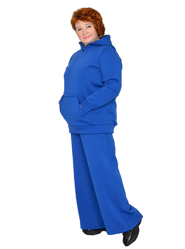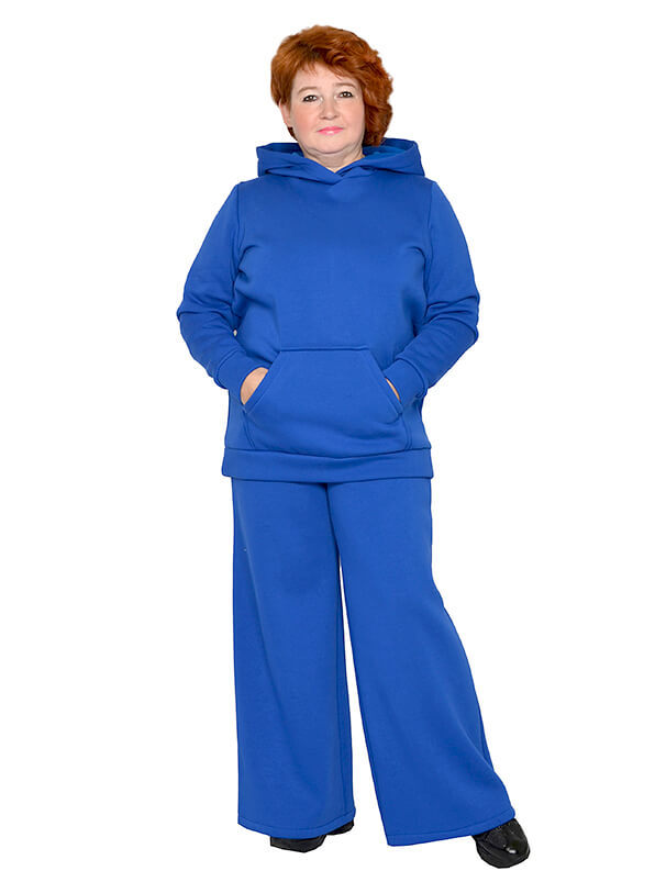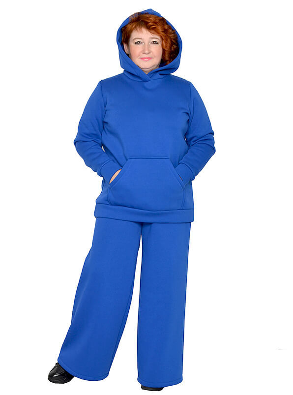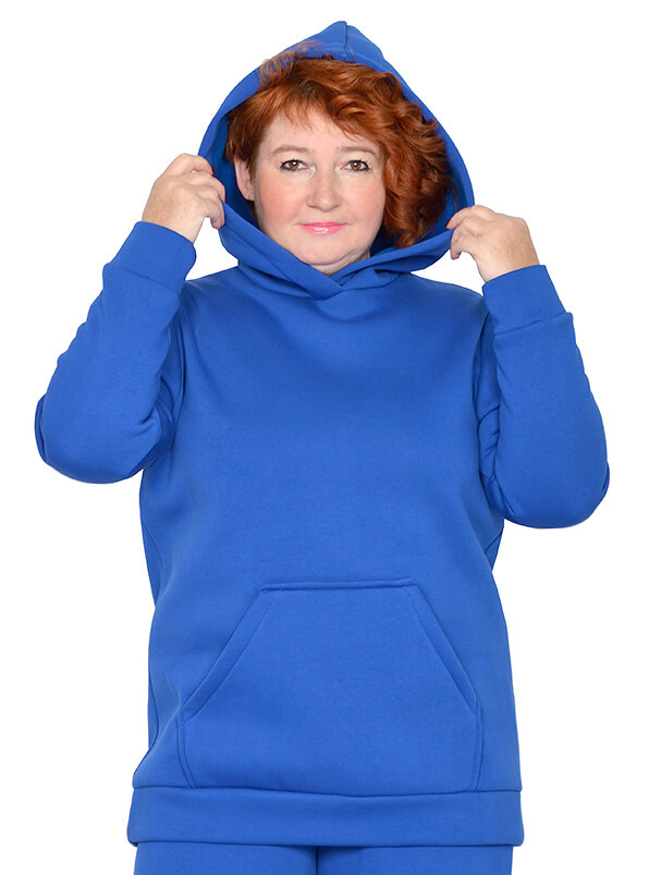 Яркая тёплая толстовка-худи для зимнего сезона. Выполнена из плотного трикотажного полотна футер трехнитка, с гладкой лицевой стороной, с начесом с изнанки. Цвет васильковый.