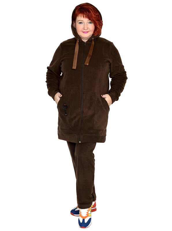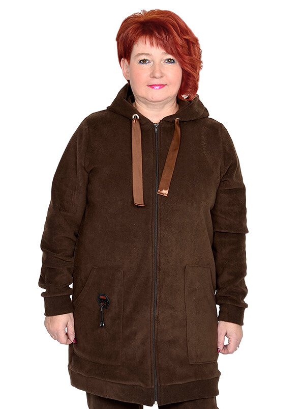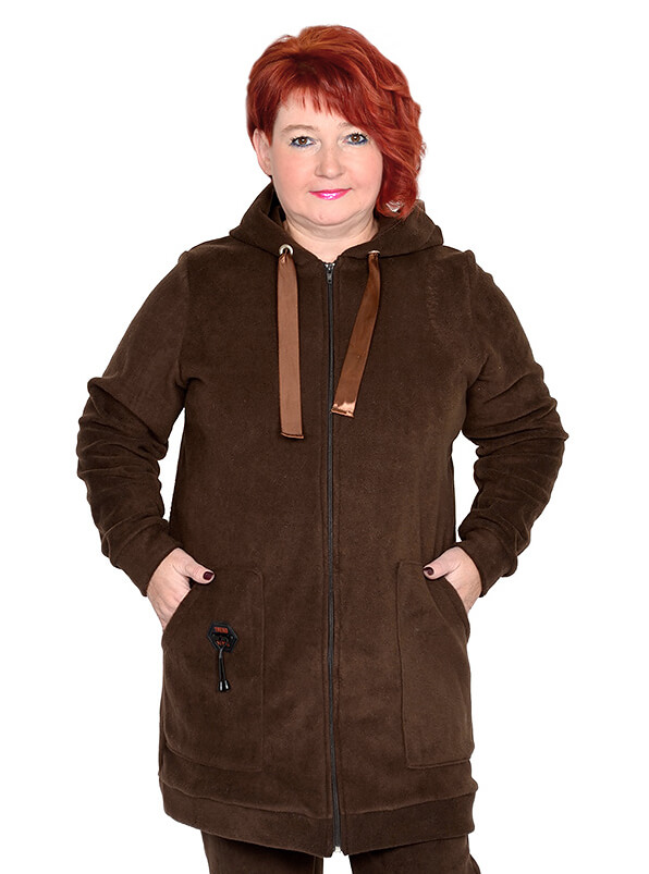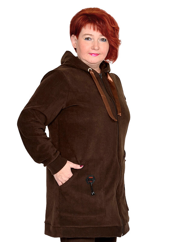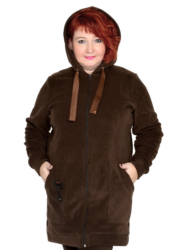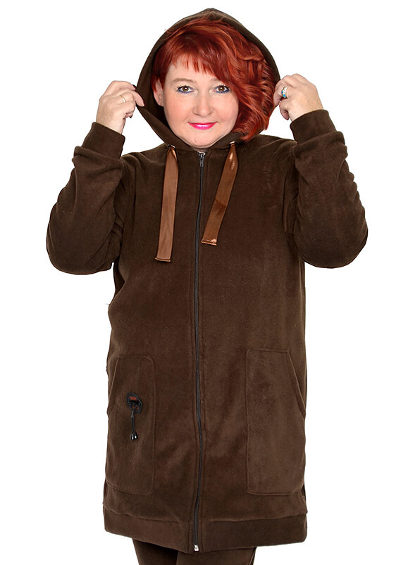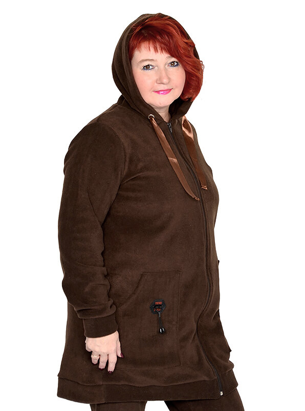 Удлиненная толстовка для прогулок и спорта. Изготовлена из флиса шоколадного цвета. Ткань теплая, не мнется, очень приятная к телу, мягкая.