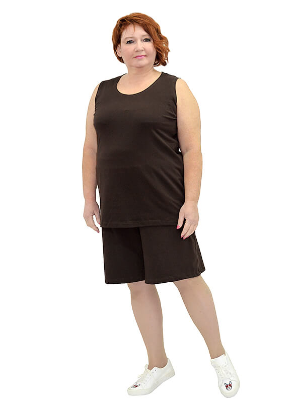 Топ из вискозного трикотажа шоколадного цвета, тонкого, эластичного, дышащего.
