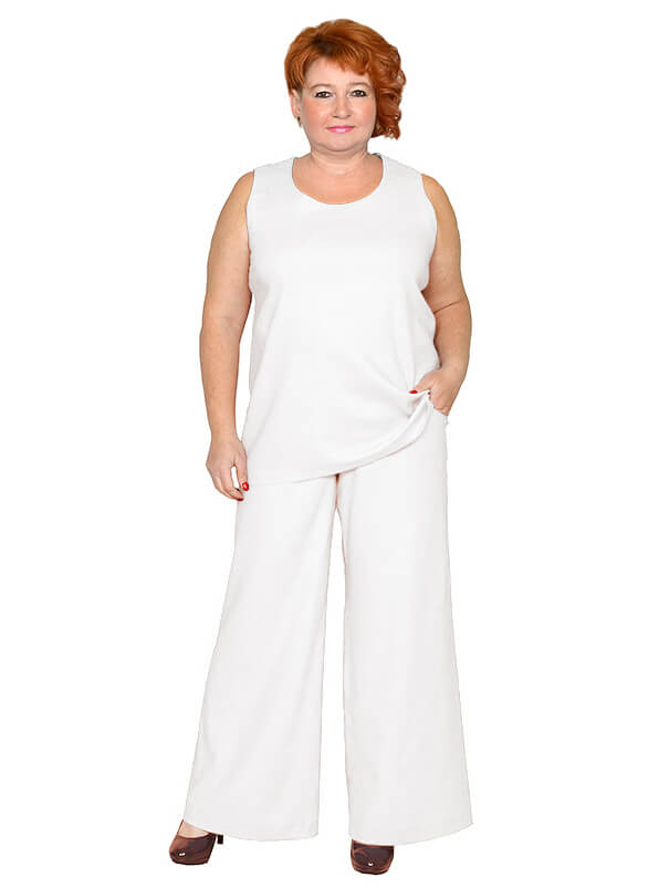 Майка-топ из плательной смесовой эластичной ткани со льном и вискозой, цвет белый.
